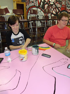 Greenwood High School ArtIII and Art IV students began the year with their first independent project....Paint the Painting Room! Yes, Tables, Sink area, Bookshelf and Doors became artist canvases. I was amazed at their creativity! The once dull and dingy room sings with colorful inspiration. Can't wait to see just what gets created in here. Great Job Everyone!!